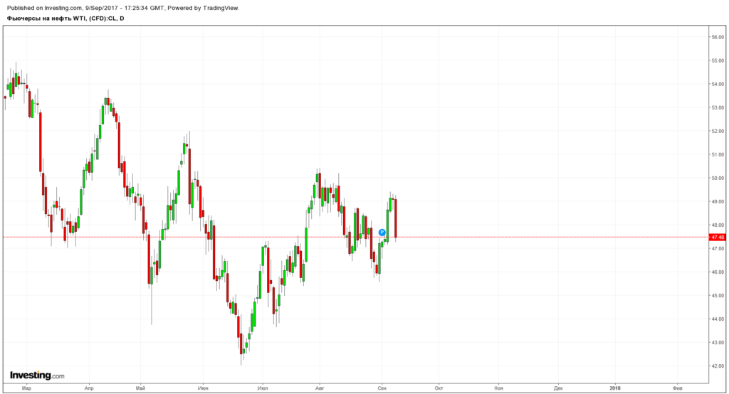 Котировки WTI по состоянию на 09.09.2017 года. Цена находится на уровне 47,5$.